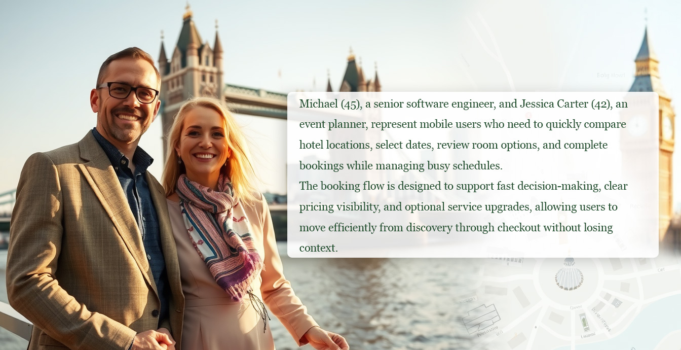 Mobile hotel booking flows often fragment key decisions across disconnected screens, forcing users to repeatedly re-enter information while juggling location, dates, room options, and pricing. When availability, room details, and add-ons are not clearly structured, users lose context, hesitate, or abandon the booking during high-intent moments like selection and payment.